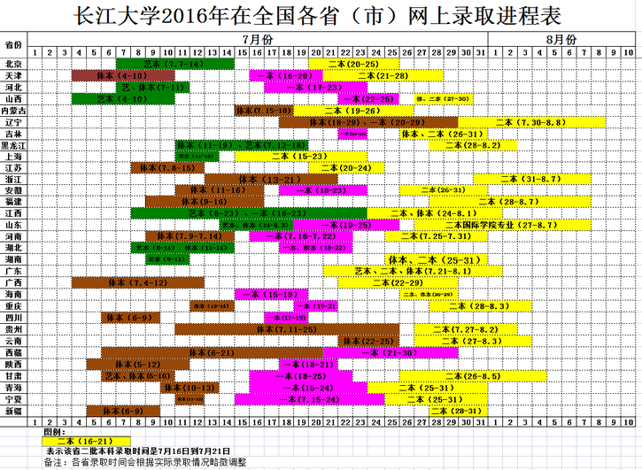 2016年在全国各省(市)网上录取进程表